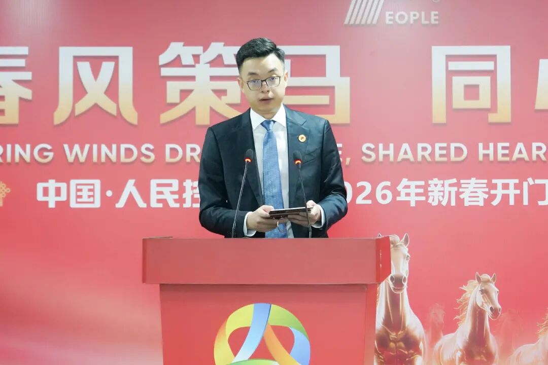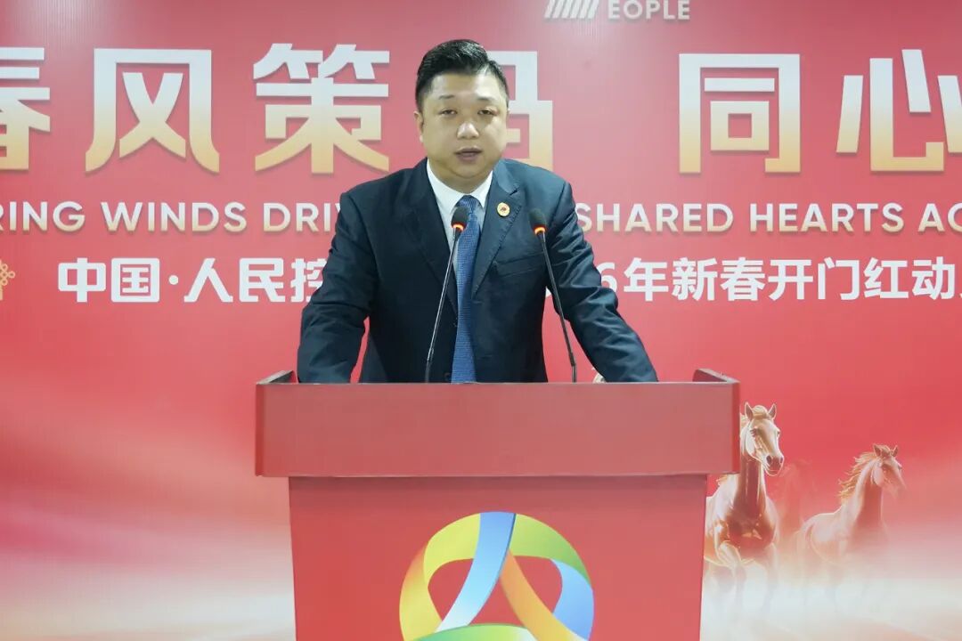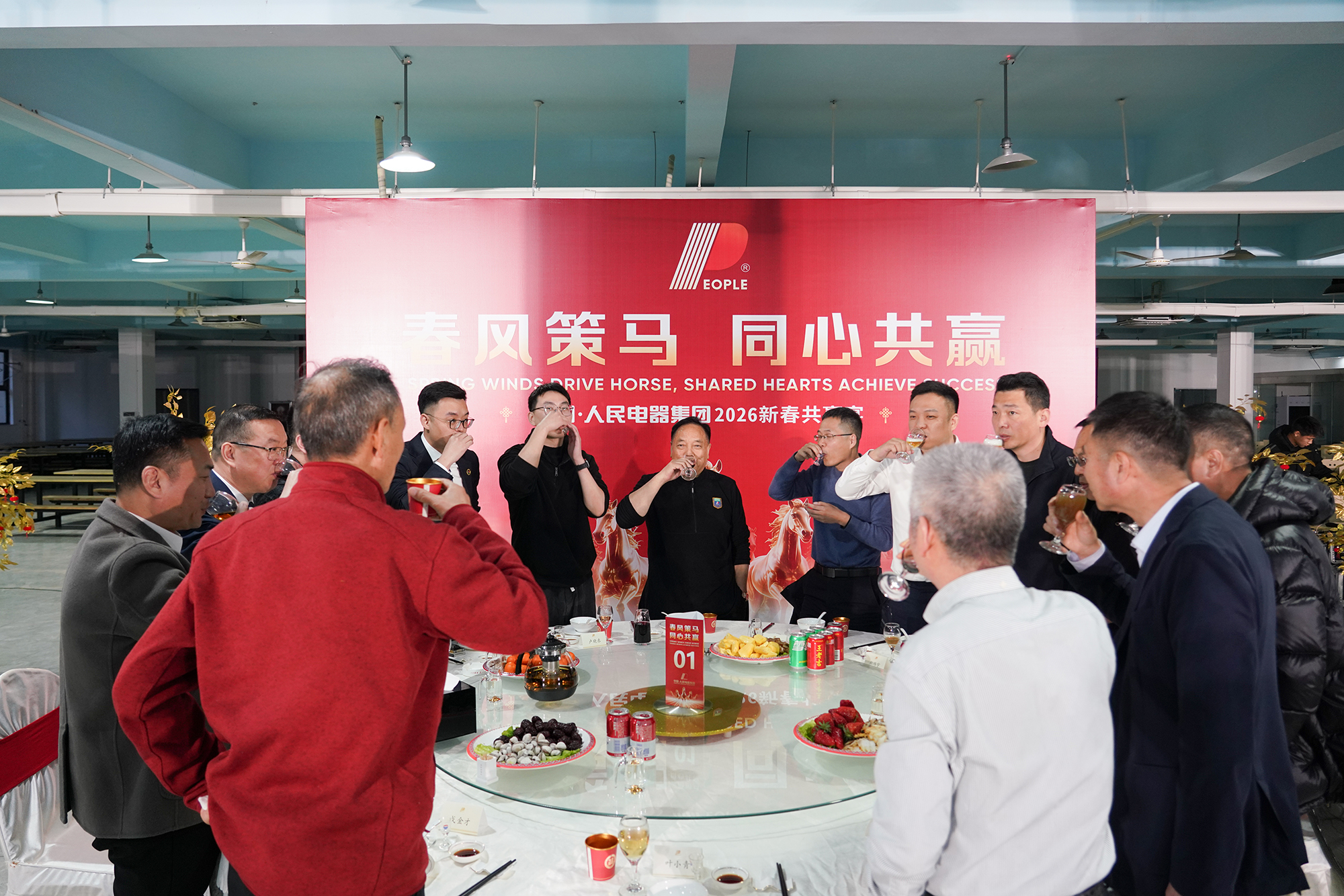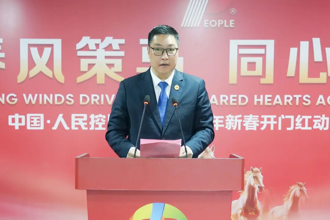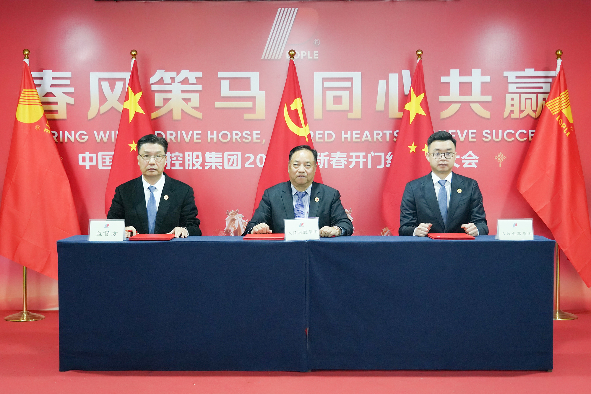 當日,集團2026年新春開門紅大會在溫州總部隆重召開。大會以"春風策馬 同心共贏"為主題,人民控股集團董事長鄭元豹、人民電器集團董事長鄭經潔、人民萬福集團董事長鄭緯宇、人民產業集團董事長陳林鋒、人民金控集團董事長葉向宇、人民控股集團監事長葉林及各板塊負責人齊聚一堂,共商發展大計,共謀嶄新篇章。人民控股集團工會主席、董事辦主任葉小青主持會議。
